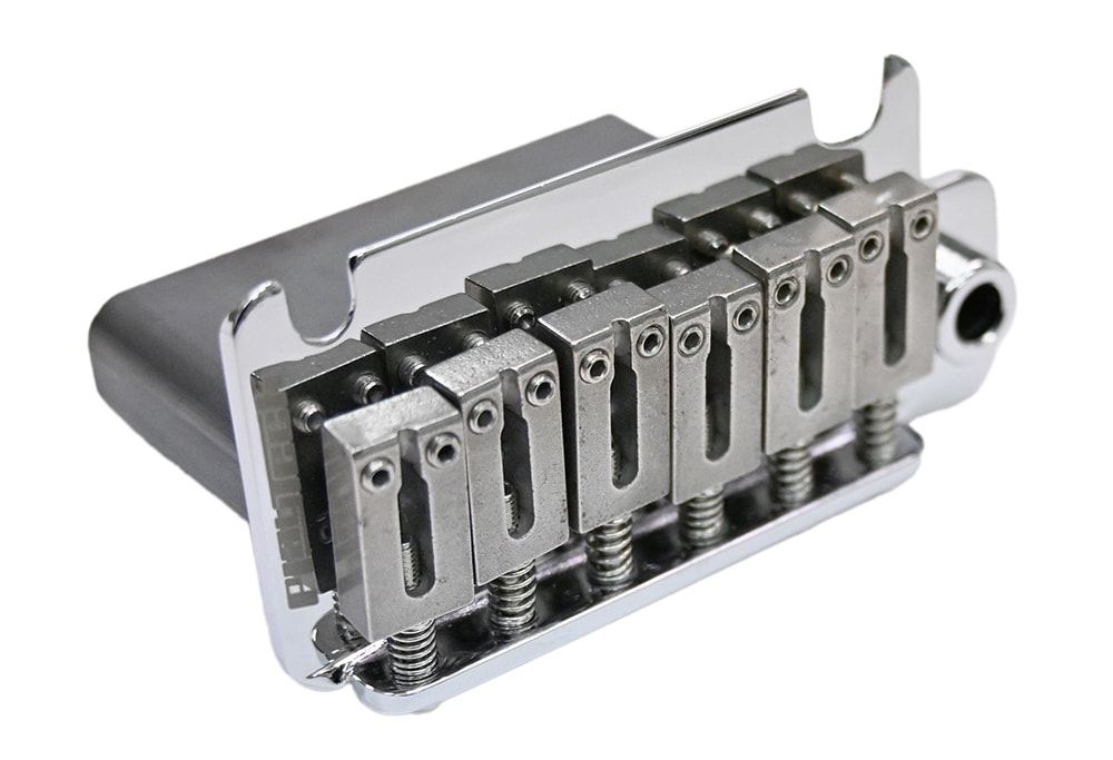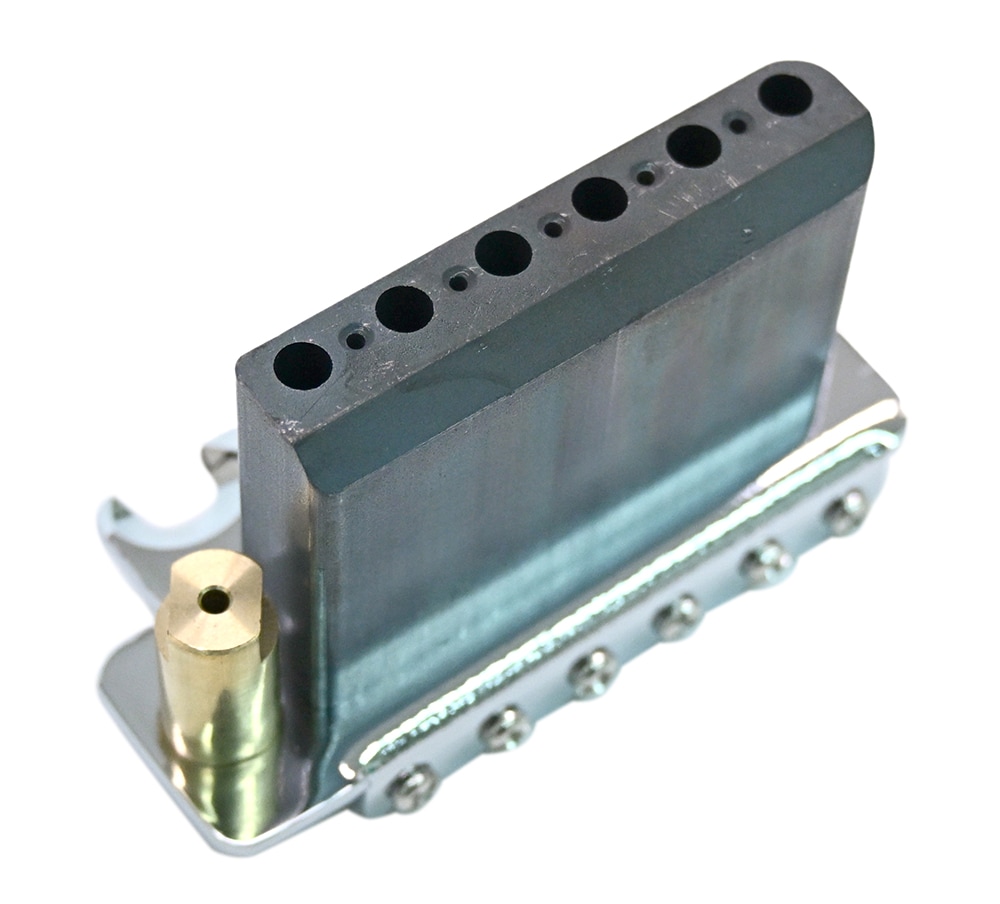 錆びに強く硬質なステンレスサドルにより、音の輪郭がはっきりとした煌びやかなトーンが得られます。40mm厚のスチールブロックが振動をしっかり保持。パッシブ・アクティブ問わず、ギターの鳴りをワンランク上の質感へ引き上げます。
