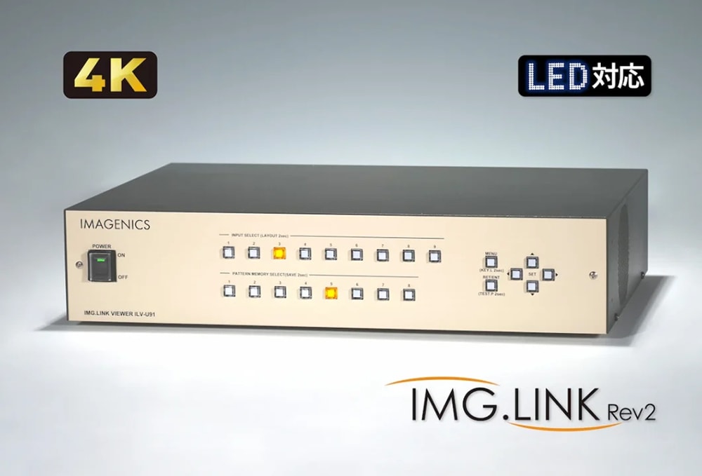 <<2026年2月発売!>>9 系統の 4K IMG.LINK 信号を合成して4K HDMI と 4K IMG.LINK Rev2 信号へ変換出力が可能な信号変換器。すべての入力に4K 対応アップダウンスキャンコンバータ内蔵、マルチビュー合成のレイアウトは任意サイズ/任意配置でフロントキーに8 種類まで割り当てが可能です。