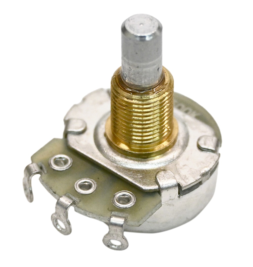 ハムバッカー搭載ギターやベースに最適な500kΩ・Aカーブ仕様のコントロールポット。インチ規格の設計により、FenderやGibsonをはじめとするUS規格モデルのリプレイスメントや、本格的な自作・改造に最適です。Aカーブ特有の自然な変化により、ボリューム奏法や繊細なトーン調整を直感的に行えます。