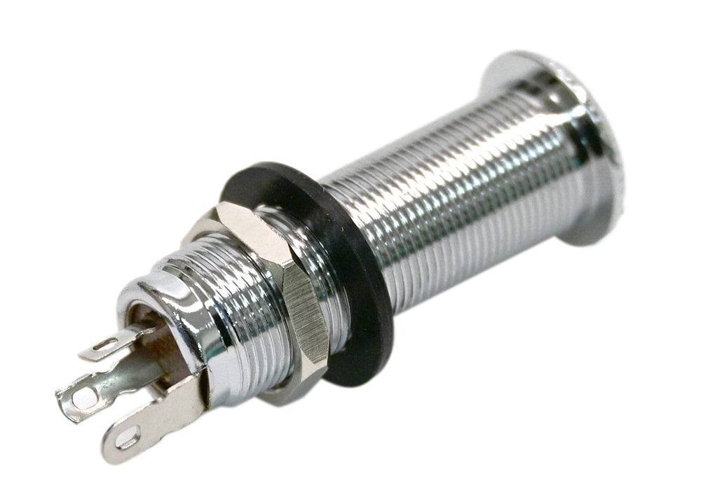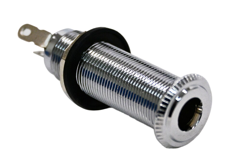 モダンなギターやベースに広く採用されている、ロングタイプのモノラル・バレルジャック。サイドジャック仕様の楽器や厚みのあるボディのリプレイスメントに最適です。