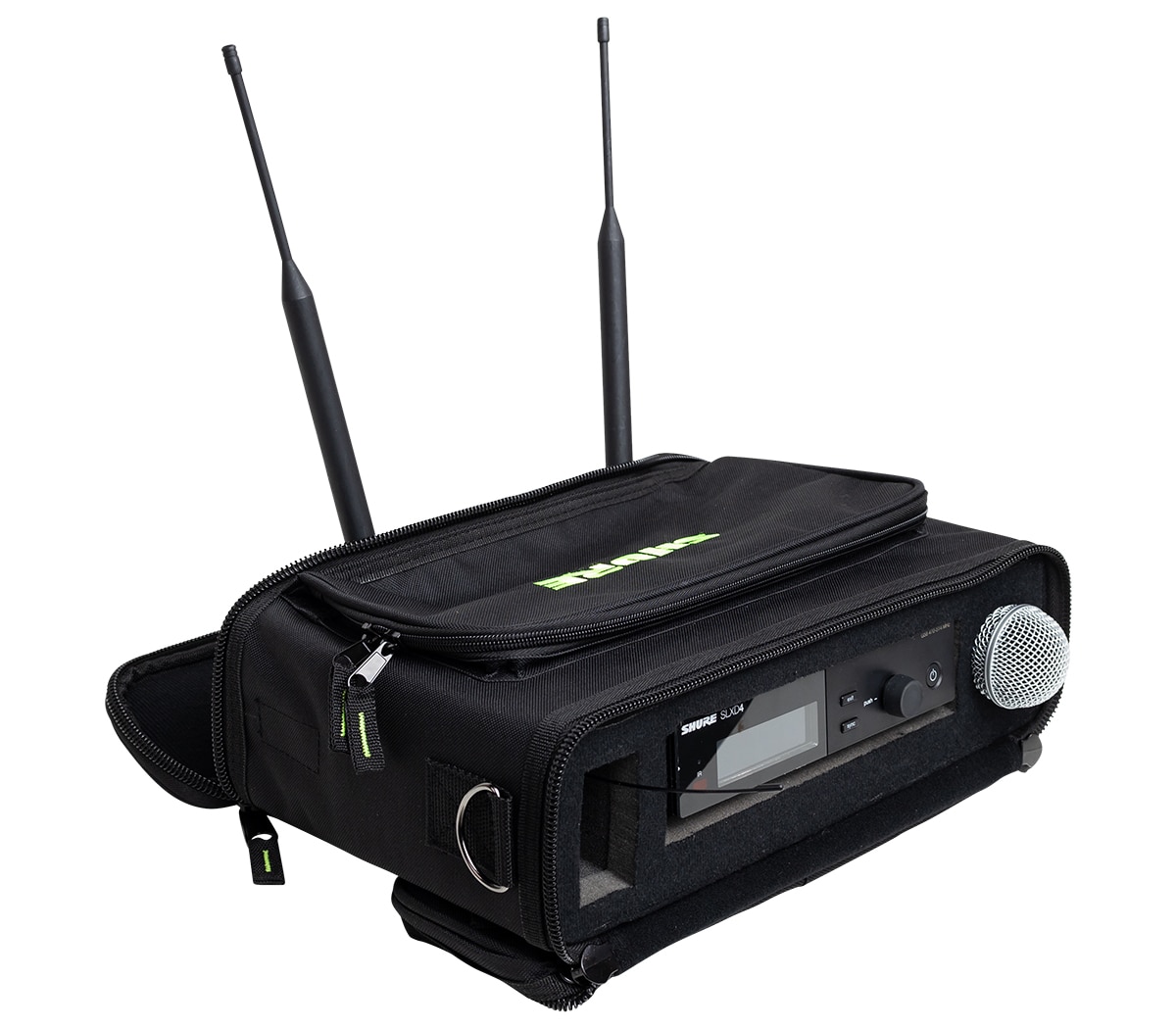 Shure SH-WSYS-BAGは、ワイヤレスマイクシステム専用に設計されたパッド入りシステムソリューションバッグです。