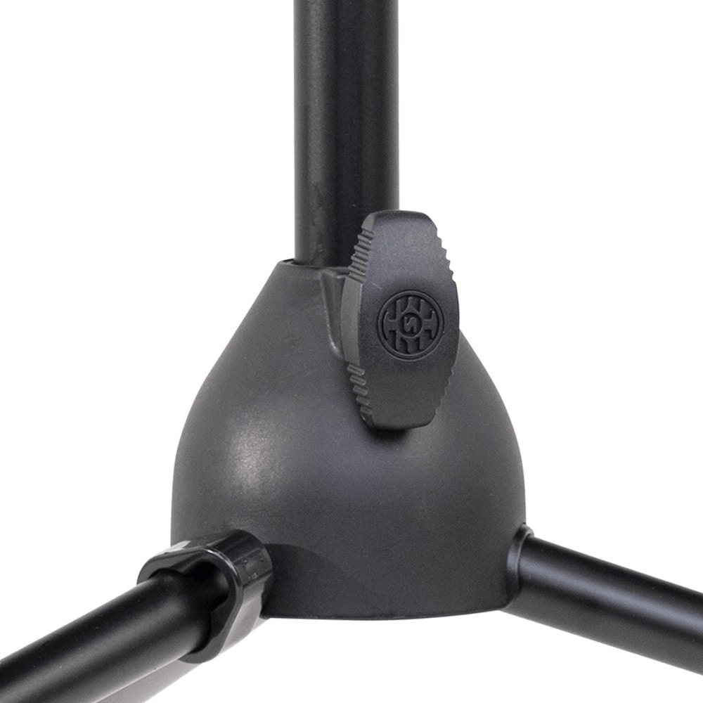 米国規格と欧州規格の両方のマイククリップに対応しています。三脚ベースは折りたたみ式で設営・撤収が容易。滑り止めゴム足により安定性を向上させています。足部の取り外し可能な白色トリムは、薄暗い環境での視認性を高め、特に暗闇のステージで曲間やセット間の移動時に役立ちます。さらに、ケーブル管理クリップを装備し、演奏中にケーブルを安全に固定し邪魔にならないようにします。
