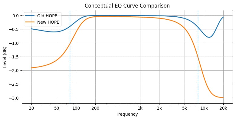 2016年に発売されたベース専用ケーブル“Type-B”のサウンドをデザインするために開発した技術を、HOPEモデル専用に再デザインしました。その結果8kHz以上をナチュラルな質感で旧モデル比 約 -2.5dB ロールオフすることに成功。デジタルRECで最もストレスとなる高域の「デジタル特有の痛さ」を整え、密度の高い質感を与えます。