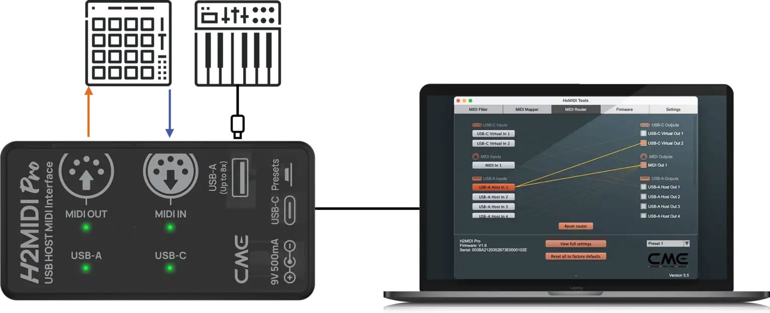 H2MIDI Pro を取説に従い接続した上で