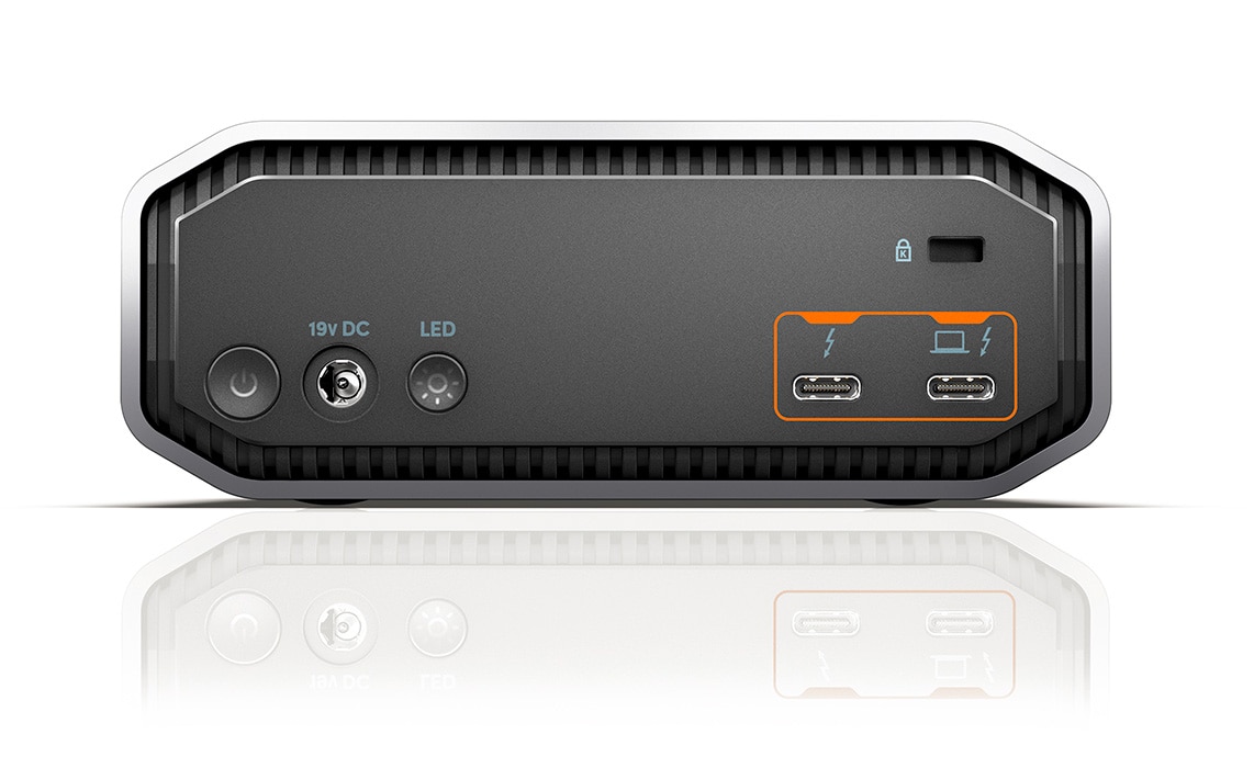 Thunderbolt 3(40Gbps)/USB 3.2 Gen 2(10Gbps)対応の大容量外付けハードディスク「G-DRIVE PROJECT」。エンタープライズクラスの7,200 rpm「Ultrastar」HDDを搭載し、Mac用フォーマット済みで開梱後すぐ使えます。モジュラーSSD「PRO-BLADE SSD Mag」スロットも備え、データの即時編集・取り込みが可能。プロユースにも安心の一台です。