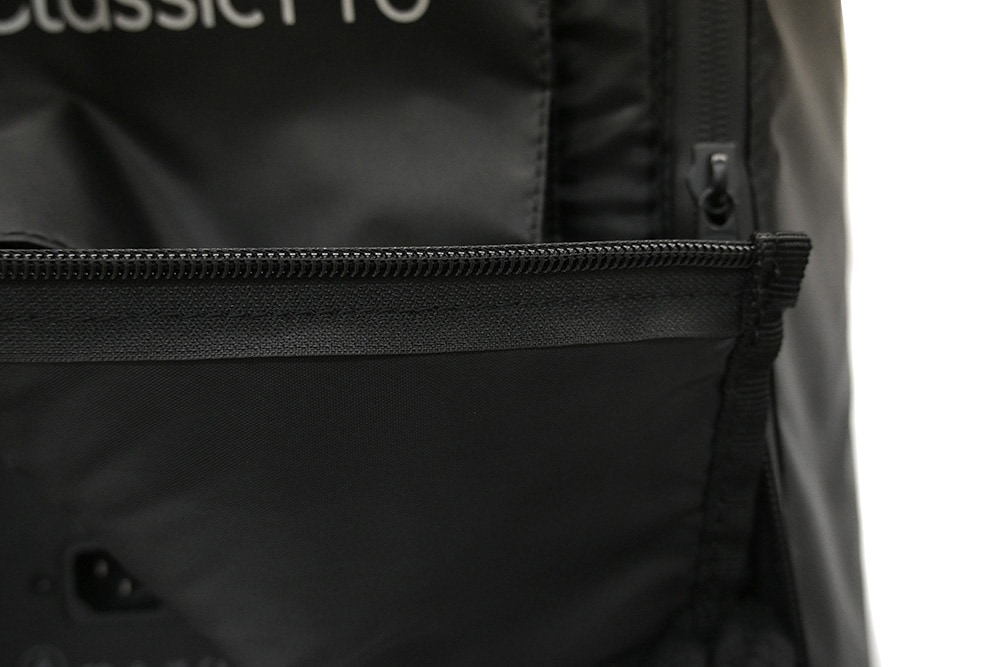 ・リアカバーも、防水ファスナーで開閉することができ、ケーブル用スロットを用意。