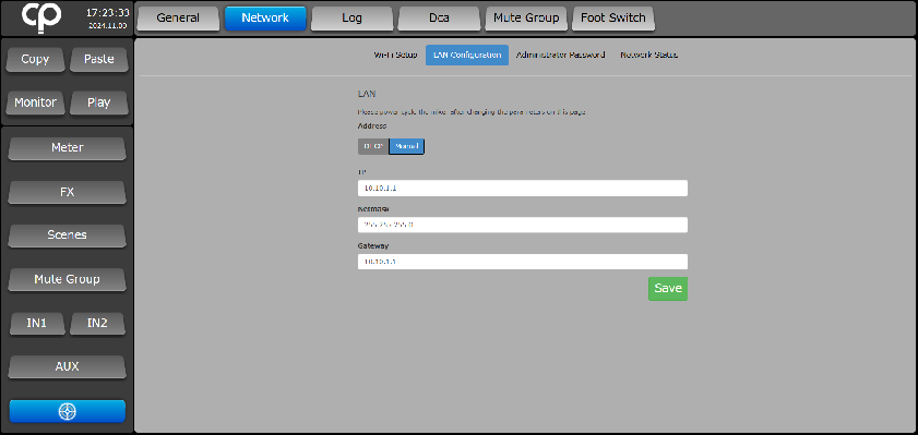 DM16のLAN設定が下記内容となっているか事前にご確認ください。