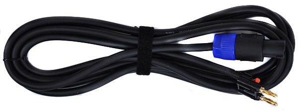 アンプとスピーカーを接続するときには必ずスピーカーケーブルをお選びください。スピーカーケーブルは(+)と(-)の配線がセットになっている為、機器の(+)と(-)表記に添って接続します。また、スピーカーケーブルを使用する場所にはとても大きな電気信号が流れている為、マイクケーブルや楽器用ケーブルを接続してしまうと、機器の故障や発火に繋がります。十分にご確認の上、正しいケーブルをご使用ください。