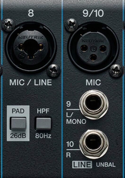 また、ライン信号はマイク信号よりもレベルが高く、プロ用標準信号は約1.25V(+4dBu)です。そのため、XLR/フォンのコンボジャックを採用している場合、PADスイッチを使用して入力感度を下げて対応するタイプもあります。