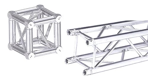 4本のパイプを四角形に組んだ、最も一般的で高強度なトラスです。安定性と汎用性の高さから、ステージ・展示会・屋外イベントなど幅広く使用されています。