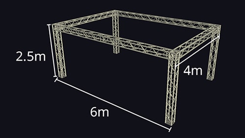 続いては、トラスの内寸を横6m、縦4m、高さ2.5mにする際の選び方を解説します。