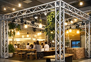イベント・ステージ・展示会・照明設営など、さまざまな現場で使われている「アルミトラス」。