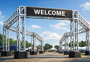 アルミトラスとは、アルミニウム合金製のパイプを格子状に組んだ構造材です。鉄製トラスに比べて軽く、錆びにくく、持ち運びやすい点がアルミトラスの大きな特長です。軽量でありながら高い強度を持ち、組み立て・分解が容易なことから、以下のような用途で広く使用されています。