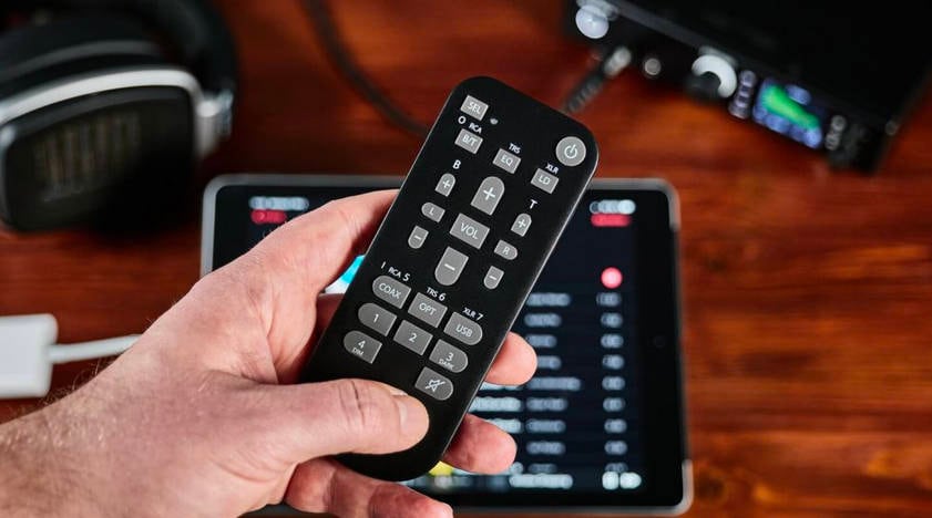 マルチ・リモート・コントローラーには、スタンバイのオン/オフ、音量、L/Rバランス、ベース/トレブルのコントロール、入力選択(光、同軸、USB)、ミュート、ラウドネスのオン/オフ、ベース/トレブルのオン/オフ、EQ用のボタンが搭載され、さらに柔軟性を高めるために32の機能とコマンドにアクセスできる4つのプログラム可能なボタンを備えます。高機能で便利なリモート・コントローラーにより、最適なリスニング・ポイントから立ち上がることなく手元で主要な操作を行い、音楽をお楽しみいただけます。