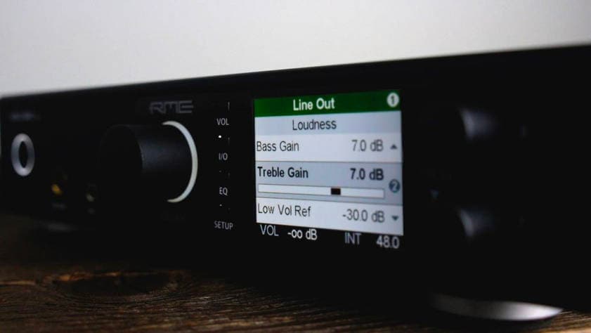 ラウドネスは、周波数と音量によって変化する人間の聴覚感度を補正する機能ですが、ADI-2 Proに搭載されるラウドネスは、ボリュームを下げるにつれ補正されるベースとトレブルの最大ゲイン値を設定可能。また各ゲインが最大に達するボリューム値も設定できます。ユーザーの聴覚や好みに合わせて適切な設定を行うことにより、最初から機能していたのかと思うほど自然なラウドネス処理を体験することができます。