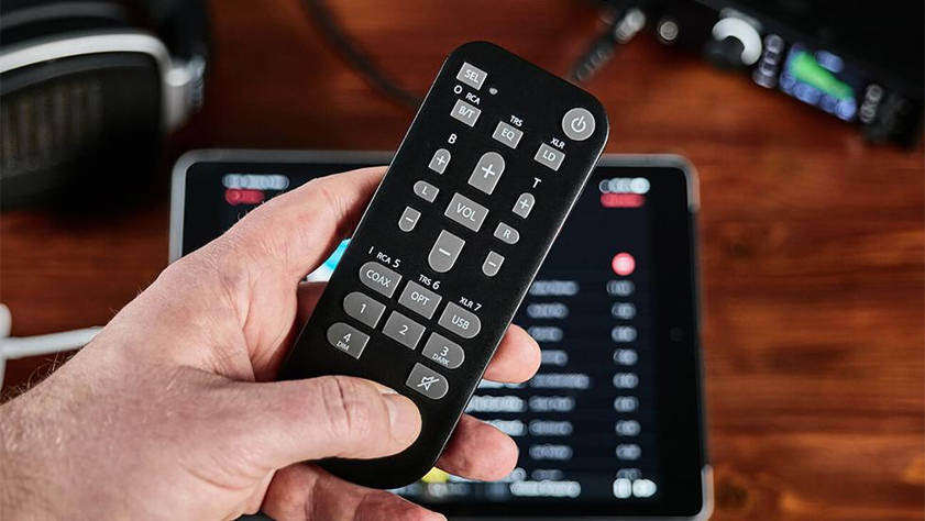 マルチ・リモート・コントローラーには、スタンバイのオン/オフ、音量、L/Rバランス、ベース/トレブルのコントロール、入力選択(光デジタル、同軸、USB)、ミュート、ラウドネスのオン/オフ、ベース/トレブルのオン/オフ、EQ用のボタンが搭載され、さらに柔軟性を高めるために52の機能とコマンドにアクセスできる4つのプログラム可能なボタンを備えます。高機能で便利なリモート・コントローラーにより、最適なリスニング・ポイントから立ち上がることなく手元で主要な操作を行い、音楽をお楽しみいただけます。