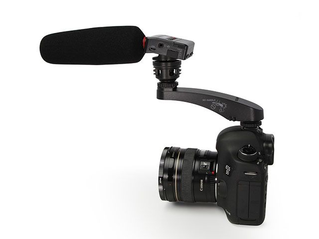 本体にシューアダプターを装備しており、カメラに『DR-10SG』を直接装着することが可能です。装着した状態でもファインダーを直接覗く動作の邪魔にならず、手持ちで撮影する際でもカメラ本来の機動性を損なうことなく収録ができます。