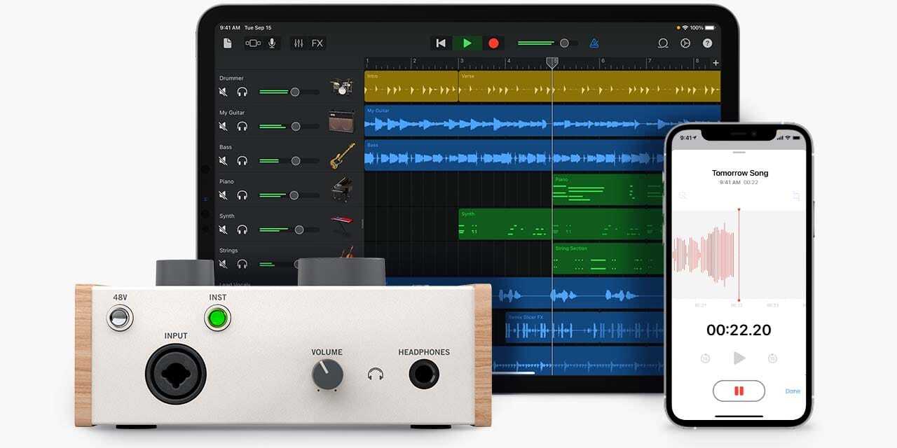 Volt 176 を iPad や iPhone に接続すれば、ビートやサンプルの作成、リハーサルの録音、曲のエディットなどをどこでも簡単に行えます*。