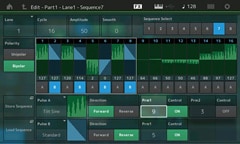 「Motion Sequencer」では、コントローラーでのパラメーターの変化を設定・再生できます。パート用8系統+Super Knob用1系統の、最大8+1系に対応。さらに手元ボタンでホールド・トリガーでき、演奏しながらでも複雑な音作りを可能にしています。