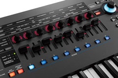 8個のロータリーノブ、8本のスライダー、フットコントローラー、ホイール、そして数多のパターンを内蔵したアルペジエーター、A/D Inputの入力を元にコントロール情報を生成するEnvelope Followerも搭載。多彩なコントロールソースを活用して、大胆な音色の変化を伴う演奏をお楽しみいただけます。