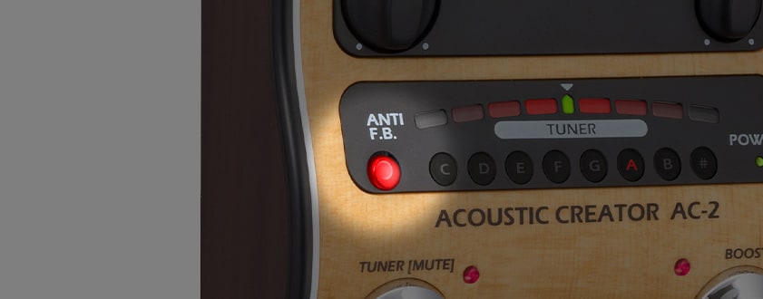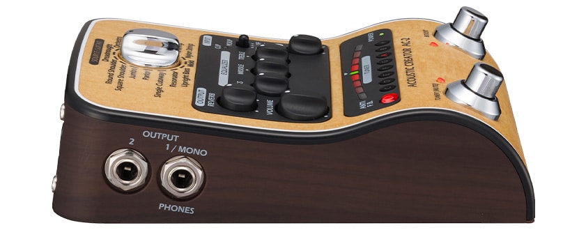 『AC-2』は、ピエゾも、マグネティックも、パッシブタイプのピックアップも入力できる、アコースティック専用プリアンプ。PAミキサーに直結できるDI機能、環境に応じたトーン調整が行える3バンドEQ、音に奥行きと広がりを与えるリバーブ、S/N比120 dB/ノイズフロア -100 dBuの超低ノイズ設計など、ライブユースのアコースティック用プリアンプ兼DIペダルとして充実した基本性能を提供します。