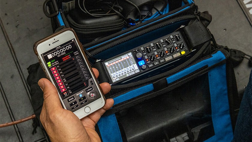 iPhone/iPad/Androidデバイスがあれば、専用アプリ「 F8 Control(iOS版/Android版)」からBluetooth経由でのリモートコントロールが可能に。録音、再生、停止、早送り、巻き戻しの基本操作のほかに、ミキサーのパンやフェーダーレベルの調整、入力レベルやタイムコード、バッテリー残量もアプリからチェックできます。