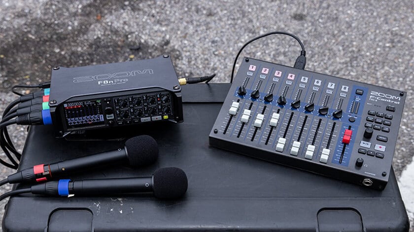 8チャンネル入力/10トラック同時録音が可能な『F8n Pro』。込み入ったセッティングが要求されるシーンでも、ポストプロダクションで音の魔法を創り出すのに十分な素材を収録することができます。