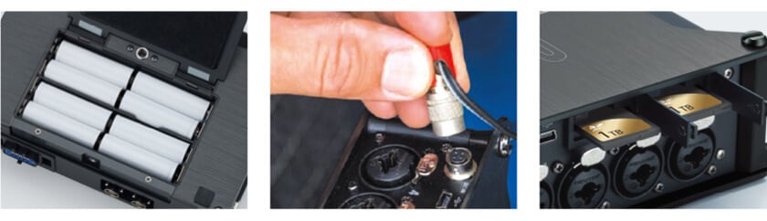 長時間のロケーション収録を可能にする、多彩な電源オプションと大容量ストレージに対応。