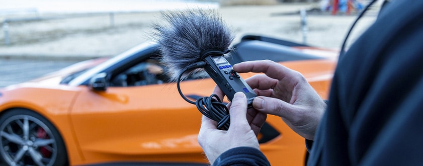内蔵XYステレオマイクは、ハイパワーな高性能エンジンと同等の最大120 dB SPLのラウドな音圧でも、クリアな音声で歪みなく捉えます。