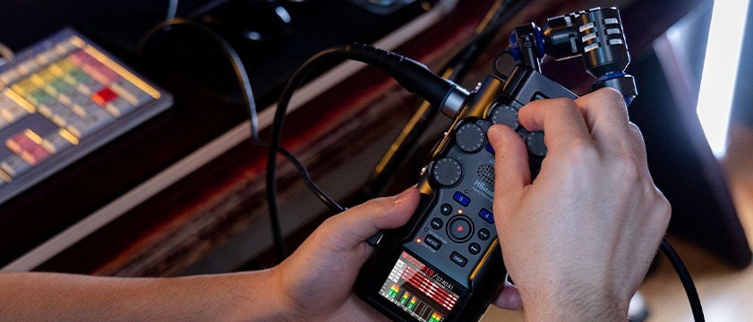 ZOOM独自のマイクカプセル交換システム 3.0を採用。付属のXYステレオマイクを、別売のステレオショットガンマイク『SSH-6e』や、XLR/TRSフォーン入力を拡張する『EXH-6e』に付け替えることで、様々な現場環境に適応できます。