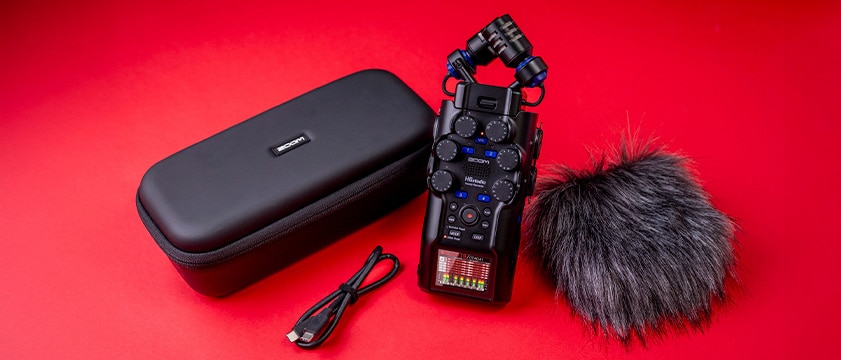 『H6studio』専用のパッド入りシェルケース、ヘアリーウィンドスクリーン、ACアダプター、USB-Cケーブルをセットにした専用アクセサリパック(APH-6st)を別売。