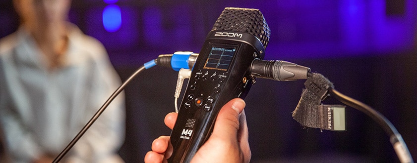 2つのXLR入力はダイアログ用に、XYステレオマイクはアンビエンスの録音に使用できます。『M4』内蔵のタイムコードジェネレータにより、録音された音声はポストプロダクションで簡単に映像と同期させることができます。