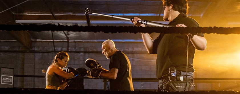 アクターの息遣いが聞こえるような静寂から一転、次の瞬間には豪快な打撃音が鳴り響く! ── というアクションシーンだって、32bitフロート録音ならゲイン調整不要で音割れ無し。小さな音から爆音まで、どんな状況でもすべての音を高解像度に録音。いつでもワンテイクで、失敗のない収録が可能です。