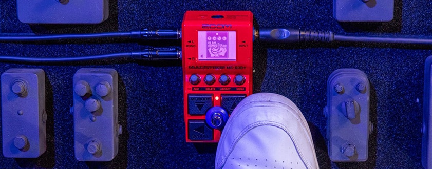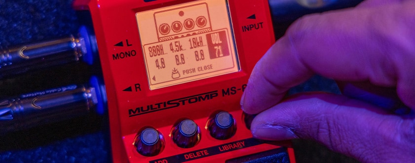 赤はドライブ、青はディレイ、オレンジはフィルターなど、液晶画面のバックライトはエフェクトの種類に応じて色が変わります。ステージ上でも、現在選択されているエフェクトの種類が容易に識別できます。