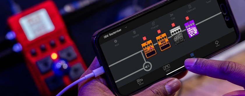 専用アプリ「Handy Guitar Lab for MS-60B+(iOS版)」を利用すれば、USB接続されたスマートフォンから、エフェクトの追加、プリセットパッチの入手、パッチメモリーの編集が可能に。エフェクトライブラリを、さらに拡張することができます。
