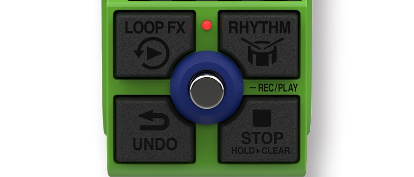コンパクトな筐体に5つのフットスイッチを搭載。REC&PLAY/UNDO/STOPスイッチを備え、ループの録音、再生、オーバーダブ、取り消し、停止操作がすべてワンアクションで。演奏のノリを損う、長押しやダブルタップは不要です。RHYTHMおよびLOOP FX専用スイッチを備え、足元の操作だけで内蔵リズムマシンやループエフェクトを利用することができます。