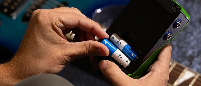 一般的なストンプボックスと同じサイズの『MS-90LP+』は、お使いのエフェクトボードに容易に組み込むことが可能。単3アルカリ電池2本で約4時間連続駆動するほか、別売ACアダプタ(AD-16)や、USBモバイルバッテリーでも動作します。