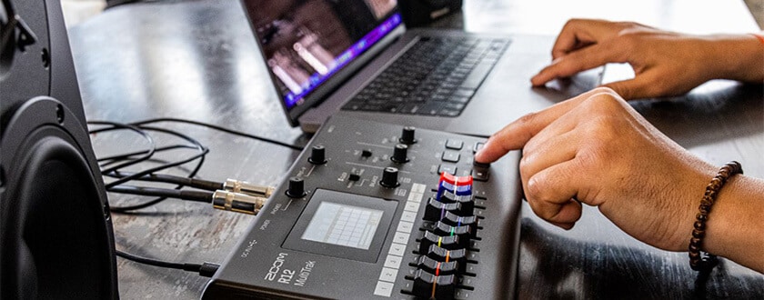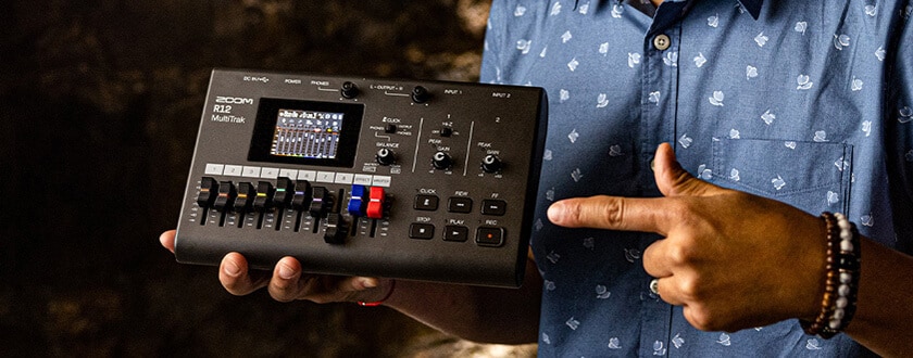 音楽をクリエイトするミュージシャンのためにデザインされた『R12 MultiTrak』。ポータブルでバッテリー駆動。画面のタッチ操作でトラック編集も可能。どこに行っても、自由に音楽を作ることができます。