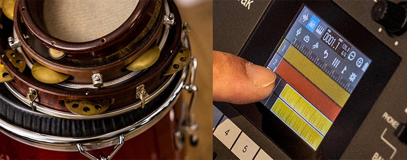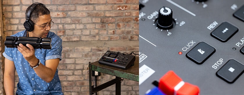 専用ボタンでいつでも起動できるクリック機能は、演奏者のヘッドフォンのみに出力させることが可能。BALANCEノブで、会場に流すバックトラック(MASTER)とクリック音(CLICK)を好みのバランスでブレンドしてドラマーのヘッドフォンに出力すれば、ライブ演奏の同期音源再生に活用することができます。