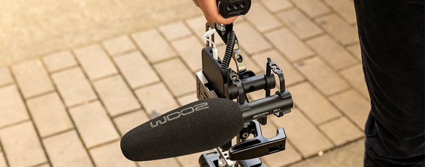 ショットガンマイク『ZSG-1』は、オフカメラでも使用可能。特に32bitフロート対応の超小型フィールドレコーダー『F2』との相性は抜群です。三脚グリップに装着したり、ブームポールの先に取り付ければ、マイキングの自由度が飛躍的に高まります。ロケ現場で音声をキャプチャするためのダイナミックなソリューションとなります。