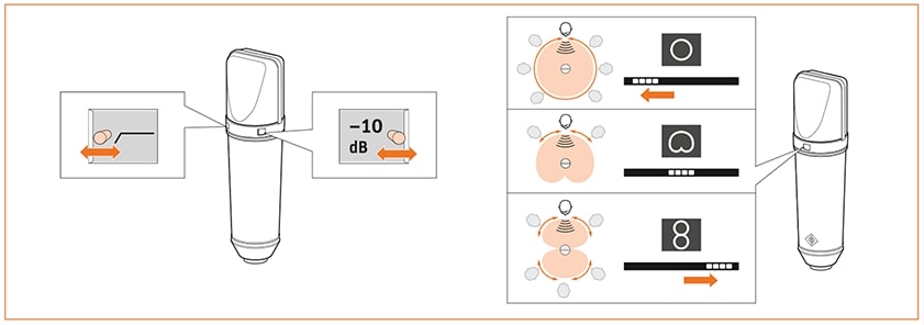 指向性は単一指向性/無指向性/双指向性 の3段階から選択可能。単一指向性でのボーカルや楽器のオンマイク用途から、無指向性でのアンビエンス収録、さらには双指向性でのトーク収録まで幅広く対応します。