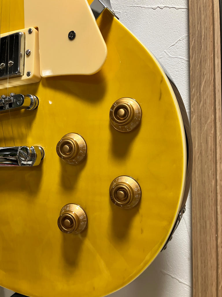 2025 1月15日に注文し取寄せということで 2月6日受け取りました。新品で塗装も とても良いです。重さは3.7kgで 画像では フラットトップに見えましたが実物は Carved topで トップのメイプルは 虎杢が はっきりしており とても満足しました。チューニングして弦高をチェックしましたが、1弦 2.0mm 6弦 2.0mm と1弦側が 異様に高くなっていました。よく見ると ブリッジとテールピースのアンカーが充分に打ち込まれておらず 浮いていたため 弦高が高かったので 当木をしてハンマーで 叩き込んだら 根本まで入りました。弦高調整 オクターブチューニングも問題なく 行えました。ペグは 予想に反して上質なもので ポストのぐらつきはほとんどありません。 指板は 画像では ローズの黒染めに見えましたが 実物はきれいなローズのままでした。フレットのバリは 少し気になりましたが 簡単に綺麗にできました。音出しでも 問題なく とても良いものです。エレキギターは はじめてですが 自分である程度 調整できるので とても良い買い物でした。