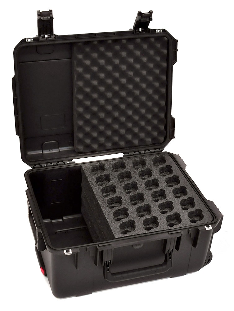 SKBのハードケースといえば防塵・防水。そして「3I-2015-MC24」は堅牢で頑丈な作りの樹脂製の縦型マイクケースです。内部には24本収納可能なフォームを備え、SM58などの定番ダイナミックマイクはそのまますっぽりと収納可能です。ケースの蓋の裏側も波型のフォームが付いているので運搬してもマイクが動き回らず安心!運搬だけじゃなく保管用ケースとしてもおすすめしたいマイクケースです。