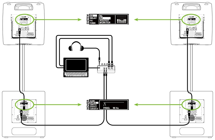 - Mackie設計のvertically-aligned, common-magnet TruSourceドライバー
