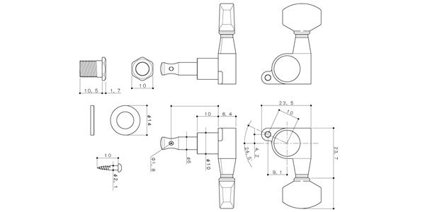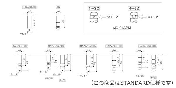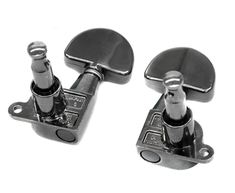GOTOH製、ペグ配列3対3のギター用ペグ。スタンダードシャフト、20ボタン、カラー:コスモブラック。