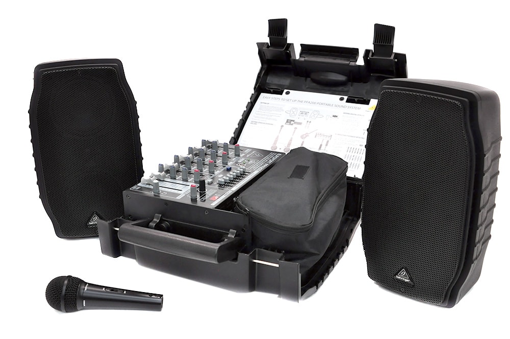 200W大出力を誇るPPA200は、わずか数分でセットアップが完了し、部屋全体に響き渡るサウンドを提供します。頑丈なキャリーオンスタイルのブリーフケースにすべて収まっているので、パーティーから記者会見、スポーツイベントまで、あらゆるシーンに最適です。必要なものがすべて揃った便利で使いやすいパッケージには、取り外し可能なスピーカー2台、高品質な5チャンネルミキサー、Behringer XM1800Sマイク(20フィートのケーブルとクリップ付き)、スピーカーケーブル2本が付属しているので、すぐにお使いいただけます。