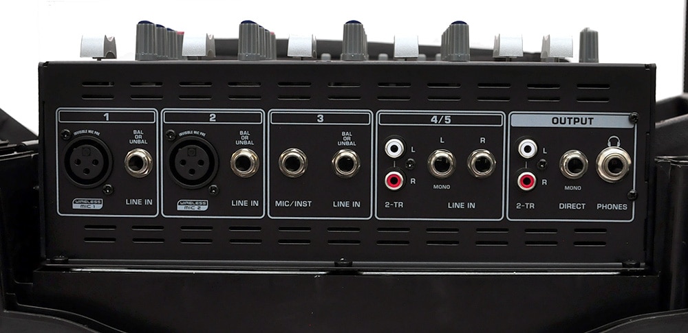 個人的にはスピーカーの形がおしゃれで好きです。オールインワンのPAセットだと、ミキサーと合体させる必要があるために見た目よりも機能を重視した形になりがちですが、このスピーカーは長方形に近い形なので、見た目が良い。4インチのウーハーが2つと1インチのツイーターの構成になっていて、小さいながらも低音をしっかり出してくれるところも頼れるポイントですね。