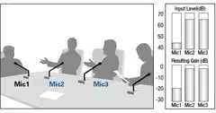 • Dugan Automixer: Prevent feedback and unwanted pickup with multiple microphones
