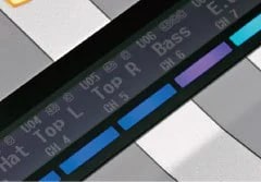 各チャンネルフェーダー上部には小型の有機ELディスプレイを装備。チャンネルネームやID、ポート名、フェーダー値だけでなく、ファンタム電源、GATE、COMPの状態も表示できます。また、チャンネルカラーと連動したカラーバーによって、スムーズな操作を視覚面でサポート。フェーダーバンクの切り替えや、シーンリコール後にチャンネルの役割が変わっても迷うことなく操作することができます。