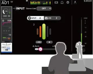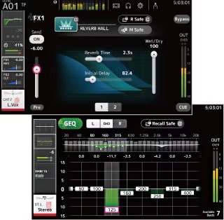 適切なゲイン調整や、コンプレッサー、EQを使いこなした音づくりを行うためには豊富な知識と経験が求められます。 『TFシリーズ』では、直感的なユーザーインターフェースに加えてセットアップ/オペレーションをスムーズにする数々の新機能を搭載し、これらの設定を強力にサポート。セットアップ時間の短縮、オペレーションの効率化を図ります。